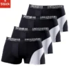 Viererpack Herren Boxer mit kontrastfarbigem Webbund und Logoschriftzug. Normale Passform. Elastische Single Jersey Qualität. Obermaterial: 95% Baumwolle, 5% Elasthan