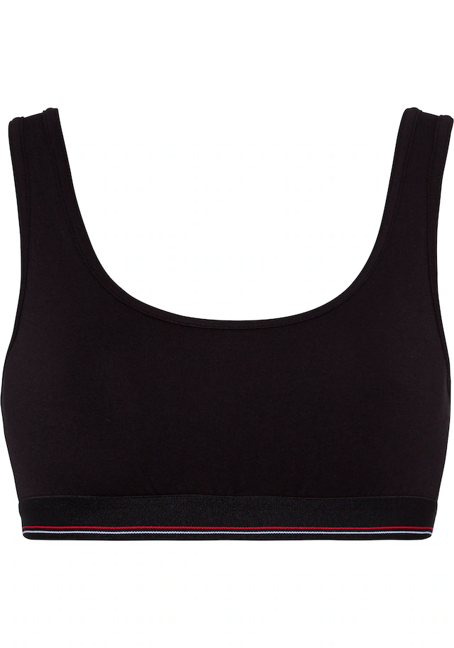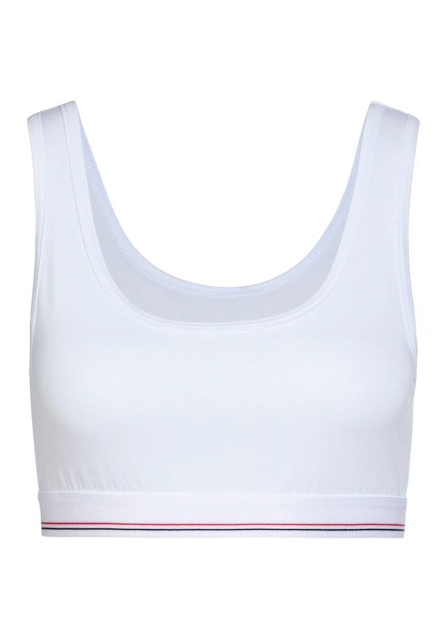 Hübsches Bustier von H.I.S im 2er-Pack. Bequemes Unterbrustgummi mit feinem Kontraststreifen. Flache Einfassungen an Hals- und Armausschnitten. Geeignet für Cup A und B. Aus trageangenehmer, elastischer Baumwolle.