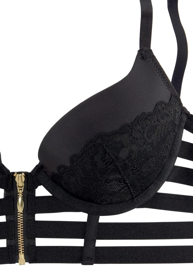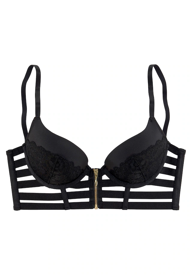 Push-Up-Bustier-BH von JETTE, kreiert von Designerin Jette Joop. Mit herausnehmbaren Kissen.Reißverschluss vorn. Reizwäsche. Verführerische Dessous. Spitzen-Dessous. Romantische Dessous. Verspielte Dessous. Aus 60% Polyamid, 35% Polyester, 5% Elasthan.