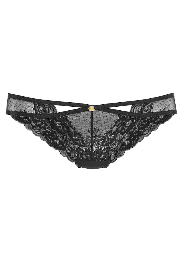 Aus edler Spitze und feinem Mesh in transparenter Optik. Vorn kontrastfarben hinterlegt. VerfĂŒhrerischer Mesheinsatz hinten. Goldfarbenes Jette Joop-Label in edler Optik vorn. Mit dekorativen ZierbĂ€nder vorn. Obermaterial: 90% Polyamid, 10% Elasthan.