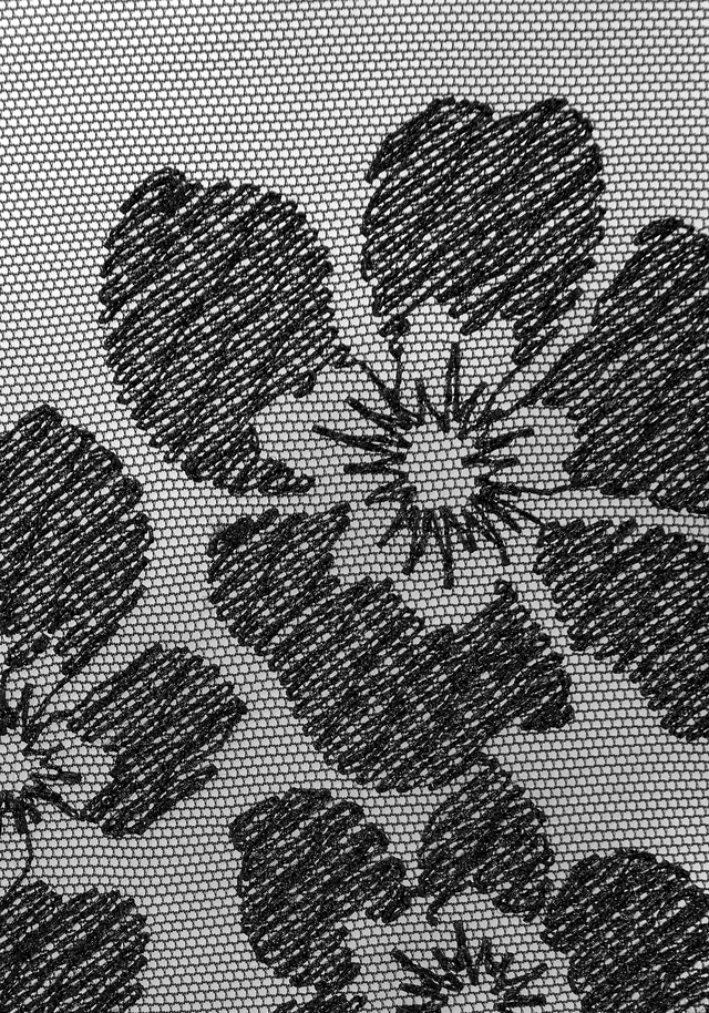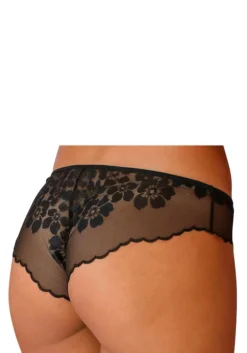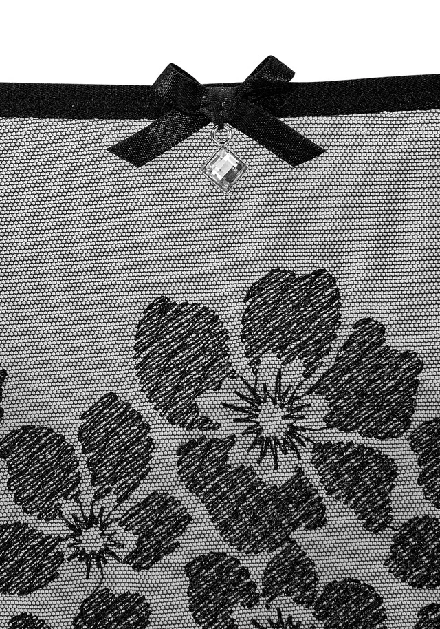 Slip aus leicht transparentem Netzmaterial mit floralem Muster. Glitzeraccessoire in der vorderen Mitte. Mit Baumwollzwickel. Aus 60% Polyamid, 30% Polyester, 10% Elasthan.