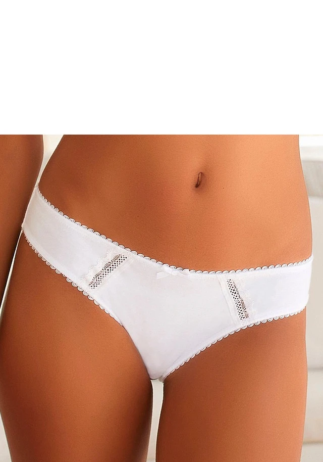 - Kleine Zierschleife in der vorderen Mitte und Spitzenborte an den Beinausschnitten