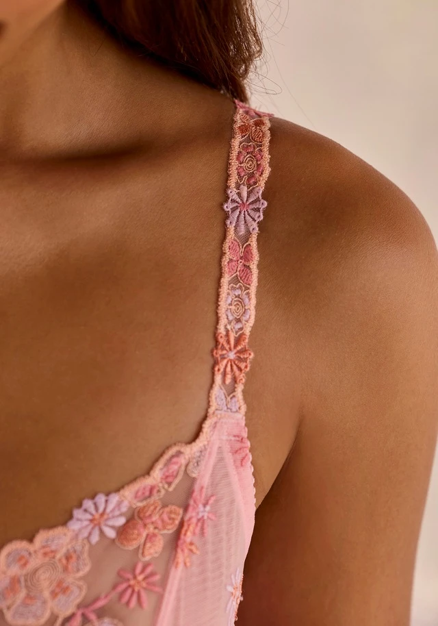 - Rundherum aus sommerlicher Spitze, bis hoch in die Träger