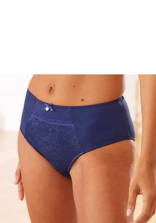 Klassische High-Waist Panty mit hübschem Spitzeneinsatz. Mit eingearbeitetem Baumwollzwickel. Passender Minimizer aus der gleichen Serie erhältlich. Aus 85% Polyamid, 15% Elasthan