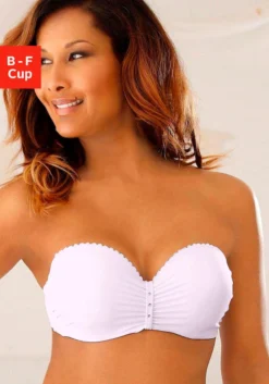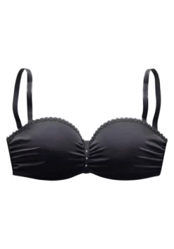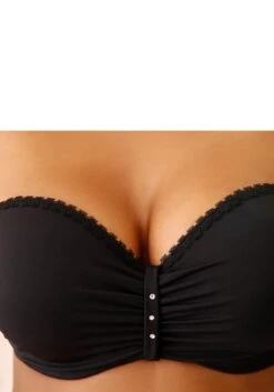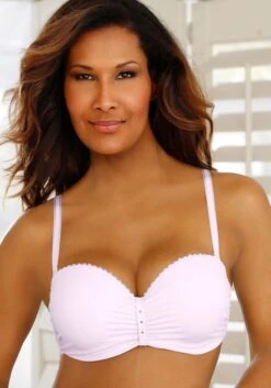 Mit abnehmbaren Trägern und herausnehmbaren Kissen für einen Push-Up-Effekt. 2 Tragevarianten: trägerlos, in normaler Trägerstellung als Nackenträger oder mit transparenten Trägern (Artikelnummer 47001888 & 752538) tragbar. Raffung seitlich an den Cups und in der vorderen Mitte verziert mit Strasssteinen. Aus angenehmen Microtouch-Material. Träger und Rückenverschluss verstellbar. Klassische Dessous. Bequeme Alltags-Dessous. Modische Dessous. Der BH ist aus 88% Polyamid, 12% Elasthan. BHs sind nicht trocknergeeignet, da die Versteller und Ringe durch die Hitze beschädigt werden und brechen.