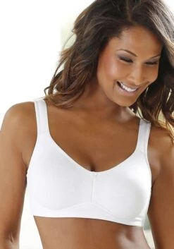 Mit nahtlos vorgeformten Cups aus atmungsaktivem und federleichten Spacer-Material. Formt wie ein Schalen-BH und trägt dabei nicht auf. Formstabil, atmungsaktiv, leicht und flexibel. Breite, entlastende Träger. Durch die besondere Schnittführung wirkt die Büste optisch kleiner. Träger und Rückenverschluss verstellbar. Der BH ist aus 40% Baumwolle, 40% Polyester, 20 % Elasthan. Klassische Dessous. Bequeme Alltags-Dessous. Modische Dessous. BHs sind nicht trocknergeeignet, da die Versteller und Ringe durch die Hitze beschädigt werden und brechen.