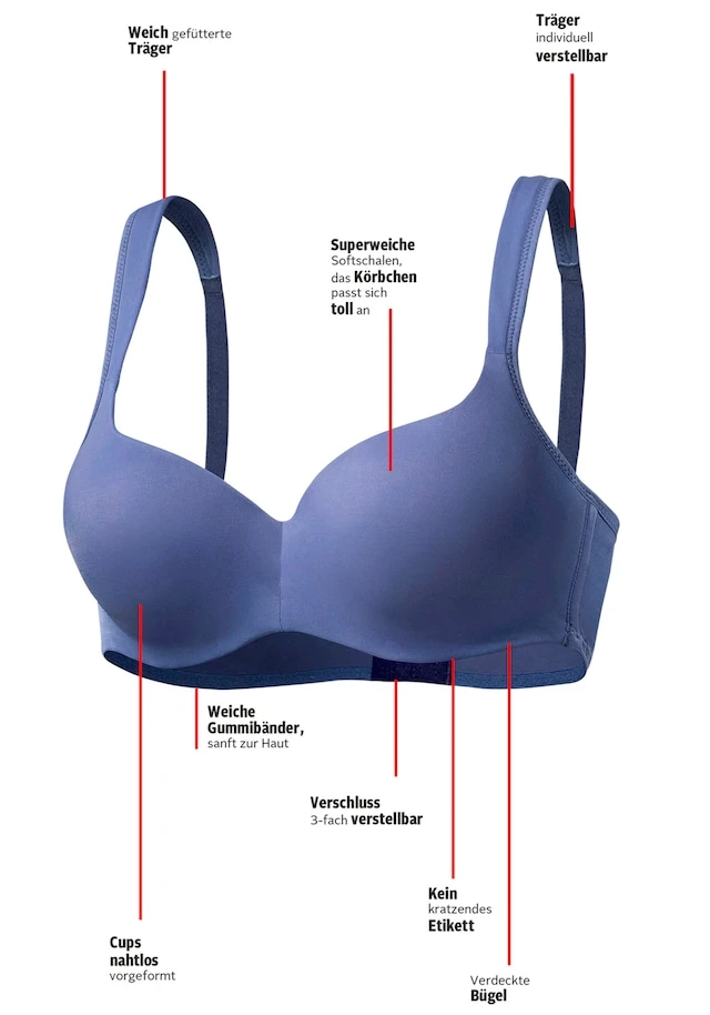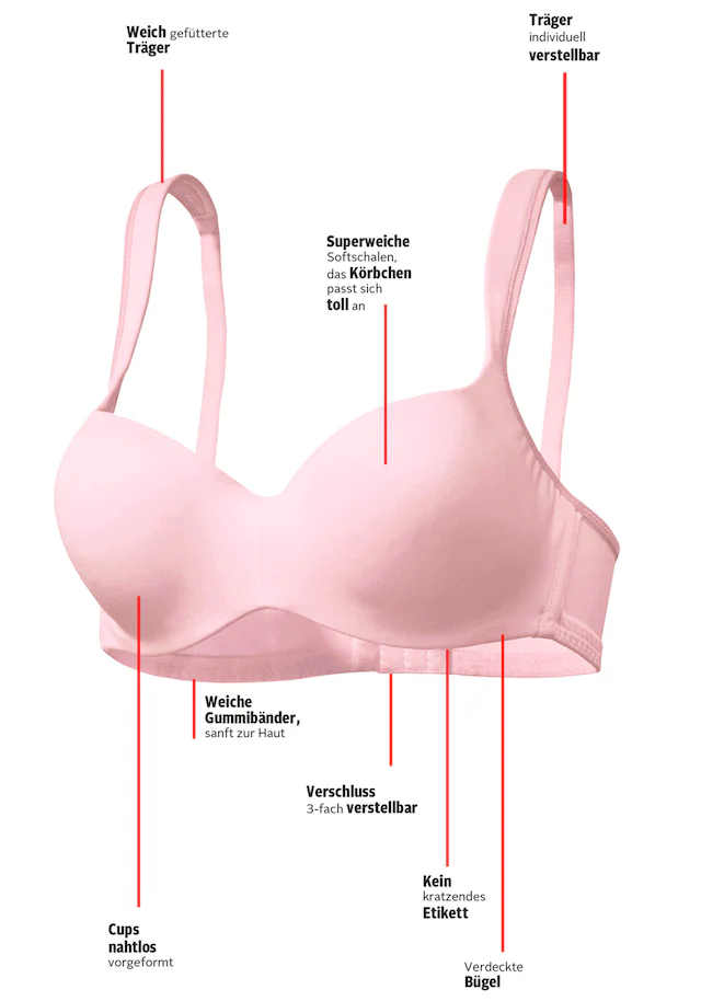 Dieser Schalen-BH aus hochwertiger Microfaser bietet ein optimales Tragegefühl: Optimizer-BH mit flexiblen Cup-Schalen, die sich automatisch Ihrer Busenform anpassen und ein perfektes Dekolleté formen. Die Formbügel sind unsichtbar eingearbeitet und drücken nicht. Die besonderen Soft-Schalen sind nahtlos vorgeformt, sodass sich auch unter eng anliegender Kleidung nichts abzeichnet. Angenehm weiche, leicht gefütterte Träger sorgen zusätzlich für optimalen Tragekomfort. Die weichen Gummibänder sind besonders zart zur Haut. Träger und Rückenverschluss sind individuell verstellbar – der Rückenverschluss bietet 3 Verstellmöglichkeiten. Endlich keine störenden Etiketten mehr: Das Label können Sie rückstandslos heraus schneiden, sodass nichts kratzt. Unsere BHs werden für jede Größe maßgeschneidert. Klassische Dessous. Bequeme Alltags-Dessous. Modische Dessous. Der Schalen-BH ist aus 82% Polyamid (Tactel®), 18% Elasthan (Lycra) gearbeitet. Wir empfehlen, die Cups nach dem Waschen in Form zu ziehen. BHs sind nicht trocknergeeignet, da die Versteller und Ringe durch die Hitze beschädigt werden und brechen.