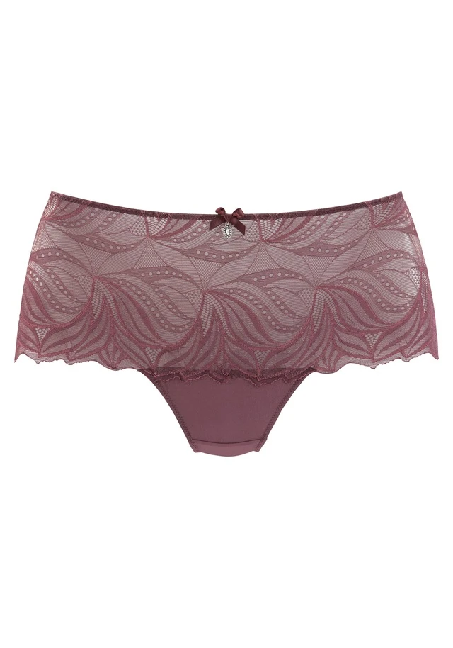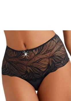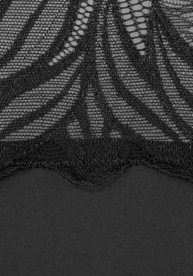 Taillenslip mit Spitze rundherum. Mit Baumwollzwickel. Aus 90% Polyamid, 10% Elasthan.