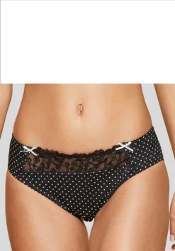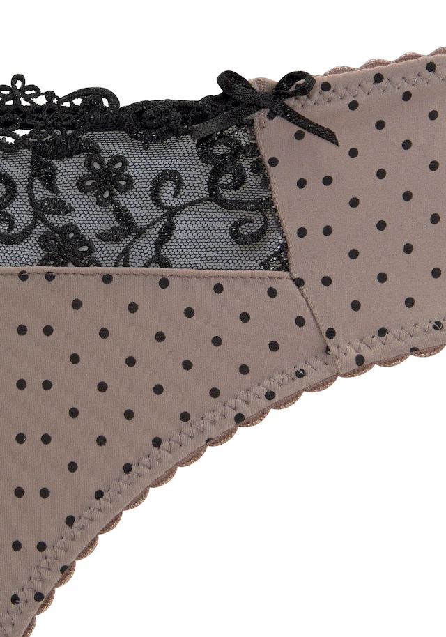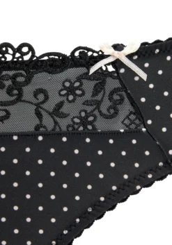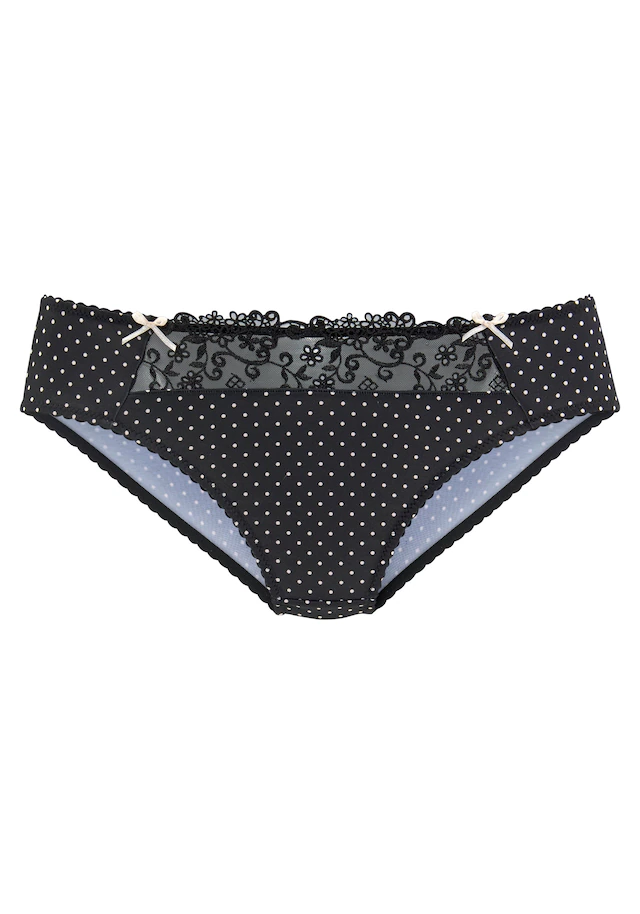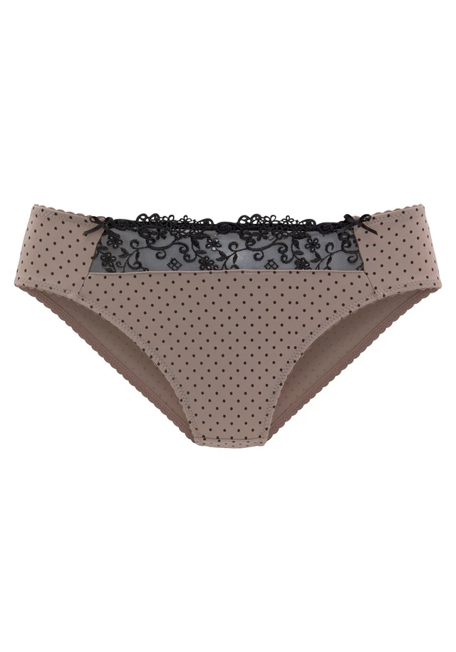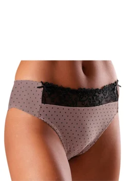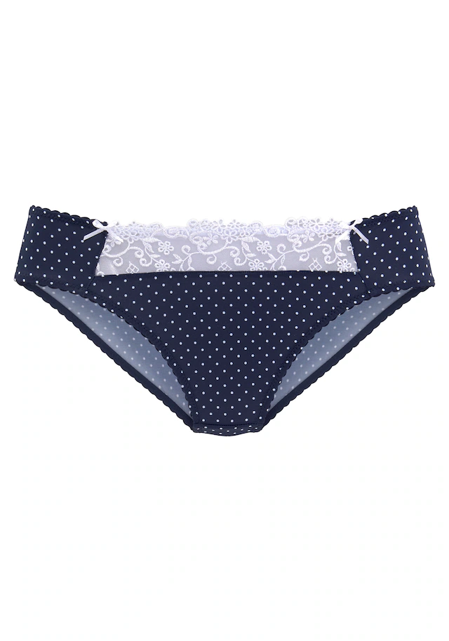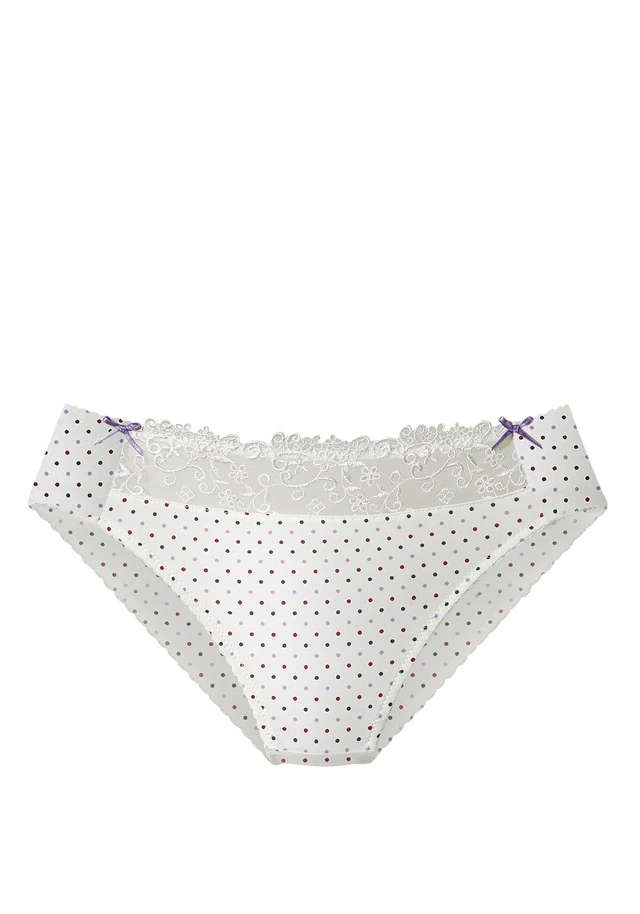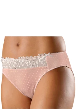 NUANCE: Slip. Schöner Stickereispitzeneinsatz vorne. Mit Baumwollzwickel. Aus 80% Polyamid, 10% Viskose, 10% Elasthan.