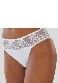 Hübscher Slip in bequemer Basic Schnittform. Vorne ist der Bund aus feiner, floraler Spitze. Passende BHs aus gleicher Serie erhältlich. Mit eingearbeitetem Baumwollzwickel. Mit Liebe & Leidenschaft in Hamburg kreiert. Obermaterial: 55% Polyamid, 25% Polyester, 20% Elasthan.