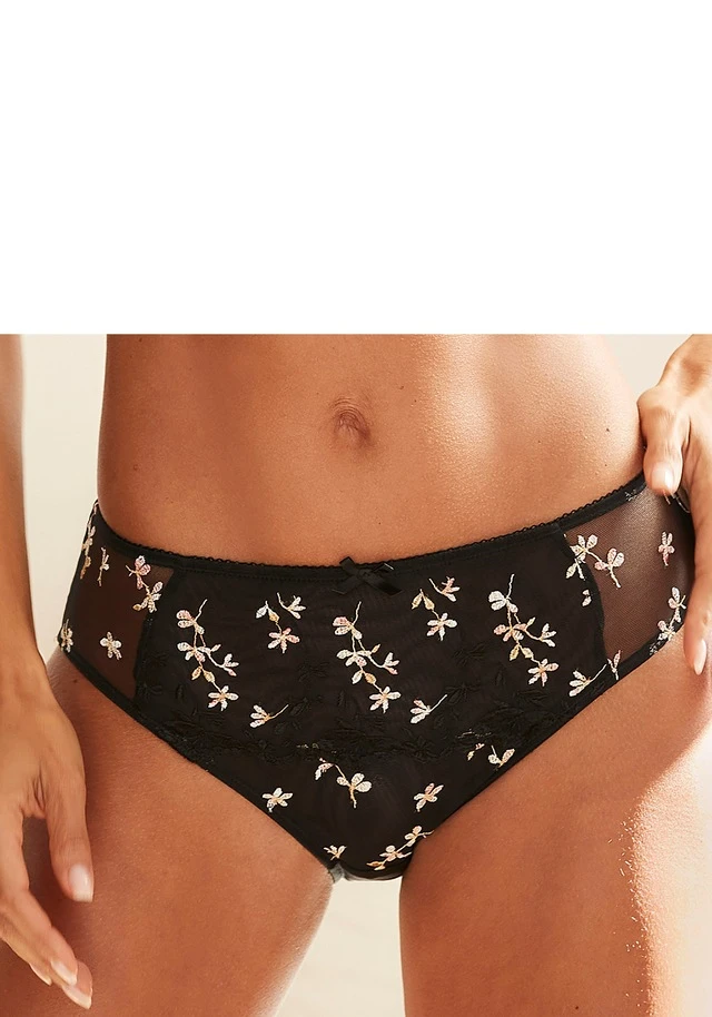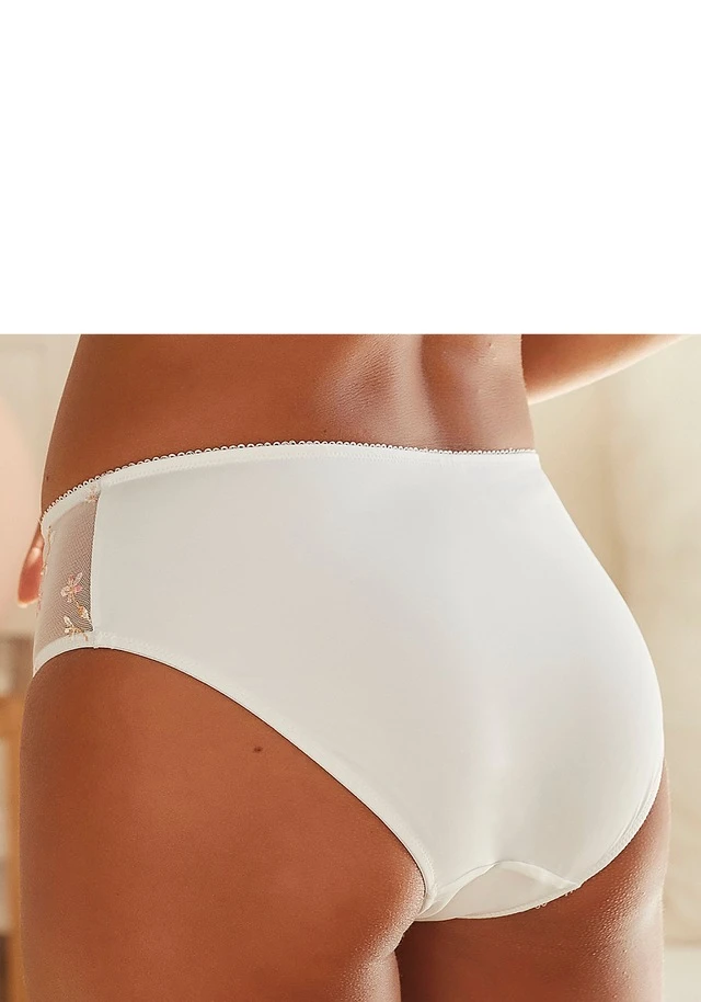 Femininer Slip in abdeckender Schnittform. Rundherum mit feinem Soft Mesh und floralen Details überzogen. Mit eingearbeitetem Baumwollzwickel. Mit passendem BH aus der gleichen Serie erhältlich. Mit Liebe & Leidenschaft in Hamburg kreiert. Obermaterial: 70% Polyamid, 20% Polyester, 10% Elasthan.