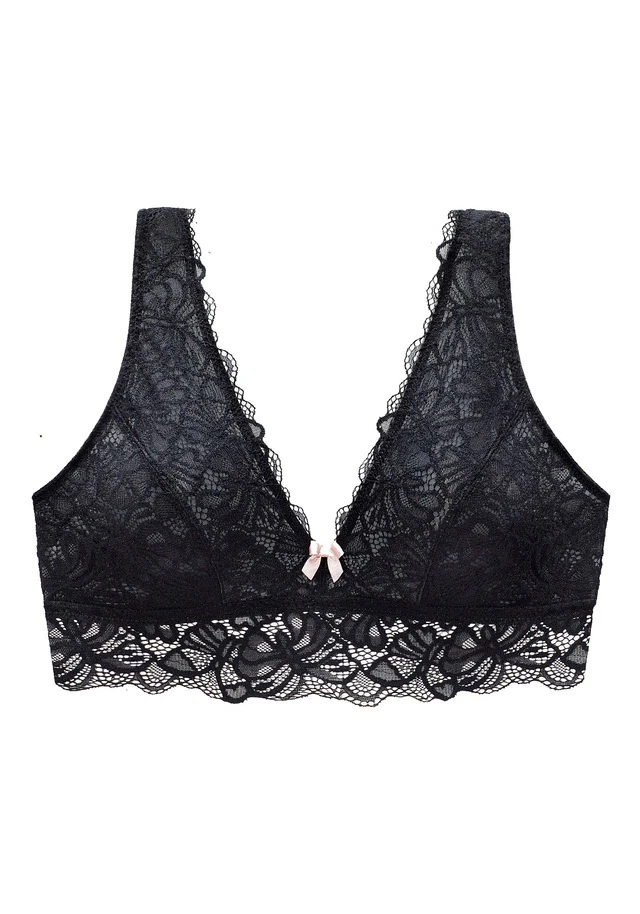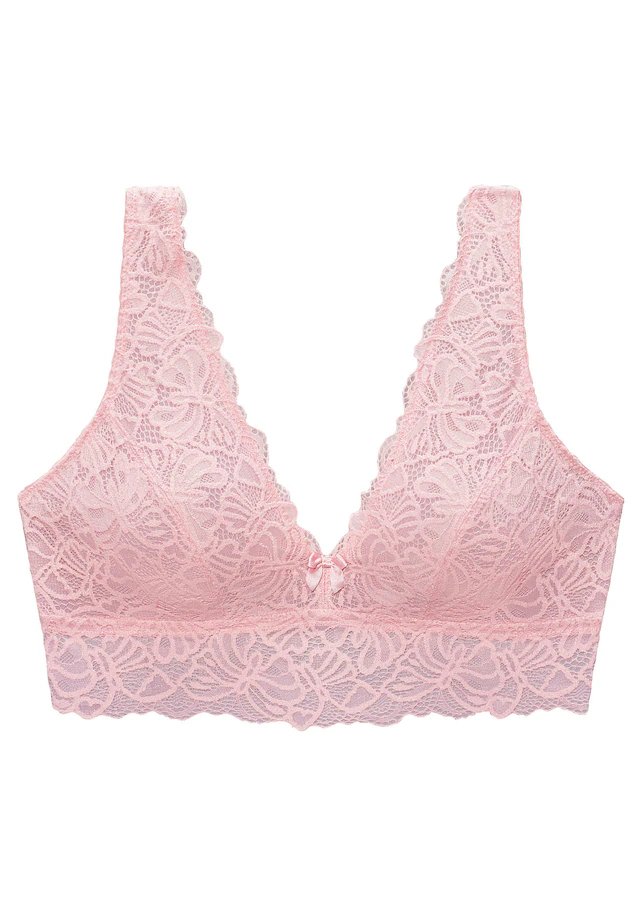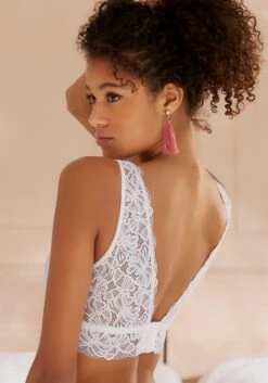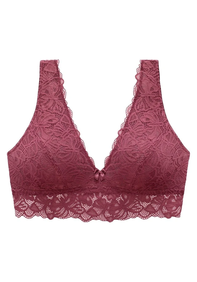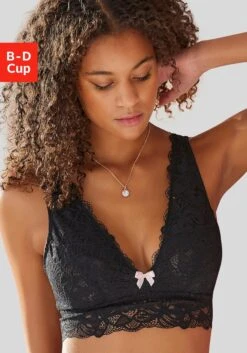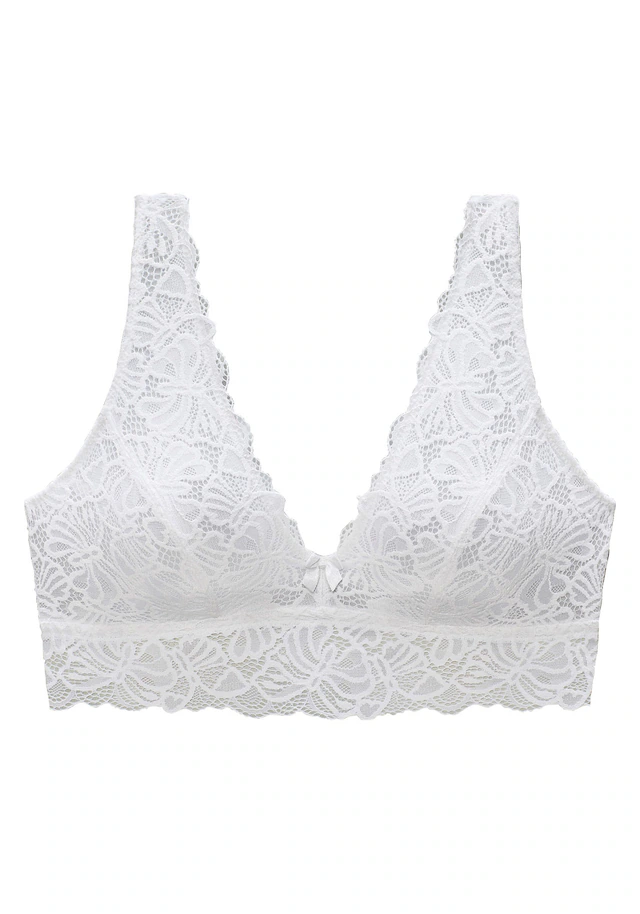 Femininer Soft-BH ohne Bügel mit verlängertem Unterbrustband. Rundherum aus feiner Spitze in blumiger Optik. Rücken ist durch einen Haken-Ösen Verschluss individuell verstellbar. Mit passenden Unterteilen aus der gleichen Serie erhältlich. Mit Liebe & Leidenschaft in Hamburg kreiert. Obermaterial: 86% Polyamid, 14% Elasthan.