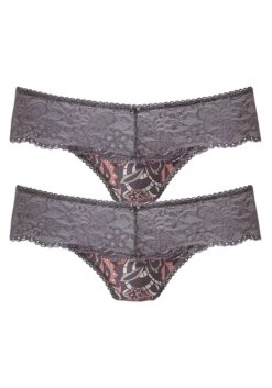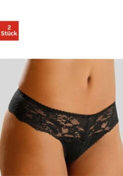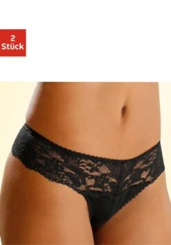 Nuance: String im 2er Pack. Rundherum mit breitem Spitzenband. Dessous mit Baumwollzwickel. Aus 85% Polyamid, 15% Elasthan.