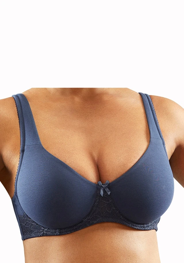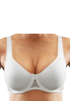 Schöner T-Shirt BH von Nuance im günstigen 2er-Pack mit hübscher Jacquardspitze am Steg. Nahtlos vorgeformte ungefütterte Cups ohne Schale für ein angenehmes Tragegefühl. Eingearbeitete Bügel stützen die Brust sanft. Ideal unter enger Kleidung ohne störende Nähte. Träger und Rückenverschluss verstellbar. Klassische Dessous. Bequeme Alltags-Dessous. Modische Dessous. Aus 85% Baumwolle, 10% Polyamid, 5% Elasthan. BHs sind nicht trocknergeeignet, da die Versteller und Ringe durch die Hitze beschädigt werden und brechen.