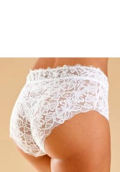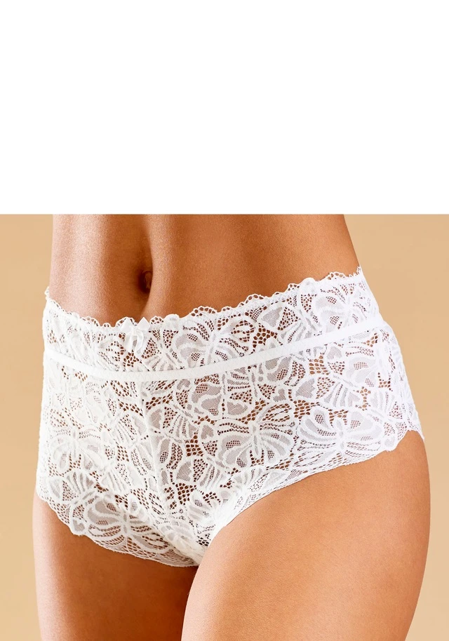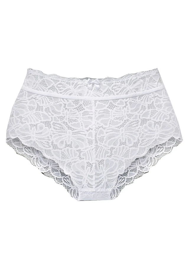 Femininer High-Waist Slip mit feinem Bund und Zierschleife. Rundherum aus feiner Spitze in blumiger Optik. Mit eingearbeitetem Baumwollzwickel. Passende BH’s aus der gleichen Serie erhältlich. Mit Liebe & Leidenschaft in Hamburg kreiert. Obermaterial: 85% Polyamid, 15% Elasthan.