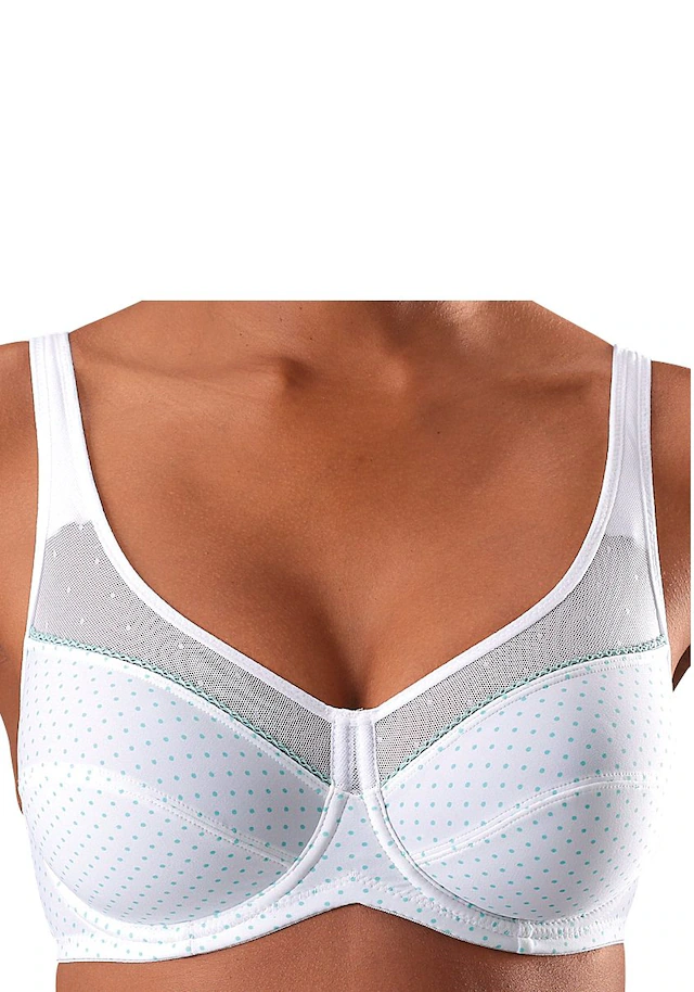 Mit Bügel. Mit zartem Pünktchendruck. Träger und Rückenverschluss verstellbar. Trageangenehmes Microfasermaterial. Klassische Dessous. Bequeme Alltags-Dessous. Modische Dessous. Der Bügel-BH ist aus 90% Polyamid, 10% Elasthan. BHs sind nicht trocknergeeignet, da die Versteller und Ringe durch die Hitze beschädigt werden und brechen.