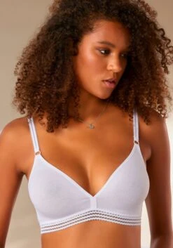 PETITE FLEUR: T-Shirt-Bralette, ohne Bügel mit nahtlos vorgeformten Cups und dekorativem Unterbrustgummi. Träger und Rückenverschluss verstellbar. Aus 95% Baumwolle, 5% Elasthan. Klassische Dessous. Bequeme Alltags-Dessous. Modische Dessous. Für ein angenehmes Tragegefühl aus softer Baumwolle.