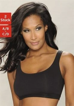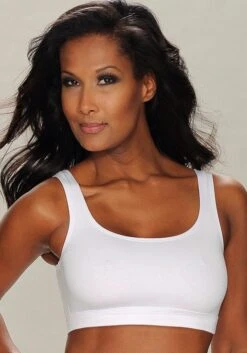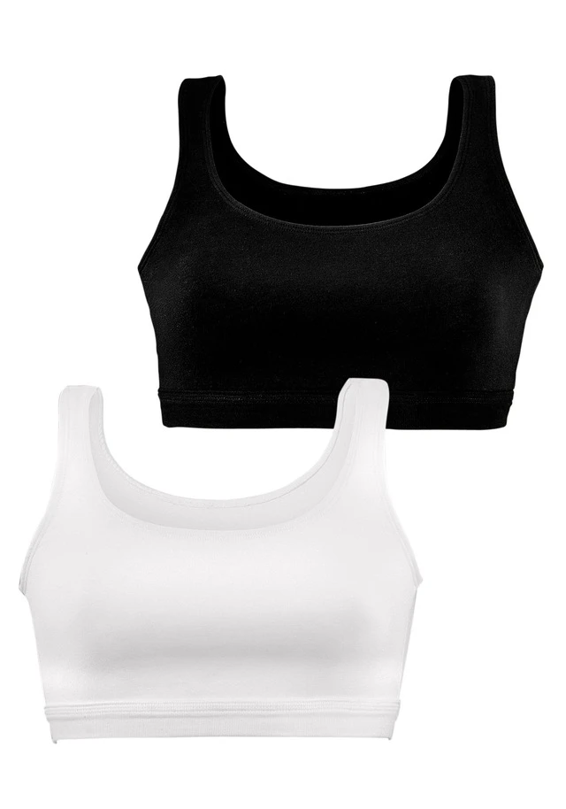 Vorn doppelt unterlegt. Mit elastischem Unterbrust-Rippenbund für einen perfekten Sitz! Hochwertige Baumwoll-Stretch-Qualität aus 95% Baumwolle, 5% Elasthan (LYCRA®).