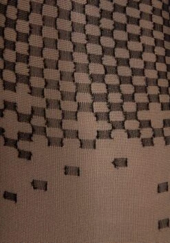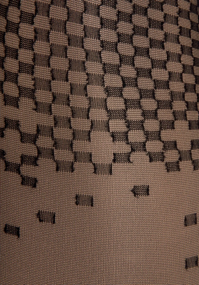 Grafisch gemusterte Feinstrumpfhose von Petite Fleur Gold. In hübscher Overknee-Optik. Ideal zu kombinieren mit kurzem Rock. Transparente, elastische 20DEN-Qualität.