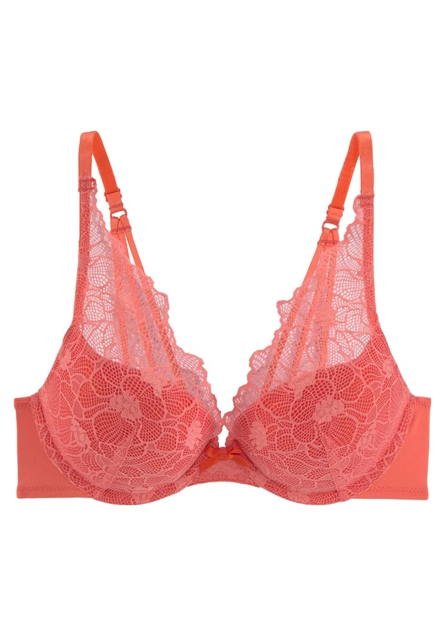 Bügel-BH aus floraler Spitze mit hübschen High-Apex Trägern. Passender String aus gleicher Serie erhältlich. Mit verstellbaren Träger und Rückenverschluss. Reizwäsche. Verführerische Dessous. Spitzen-Dessous. Romantische Dessous. Verspielte Dessous. Aus 60% Polyamid, 35% Polyester, 5% Elasthan.