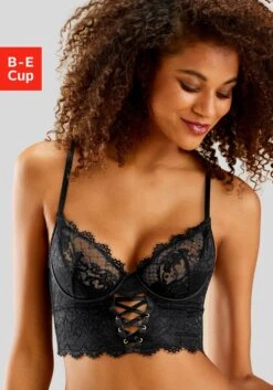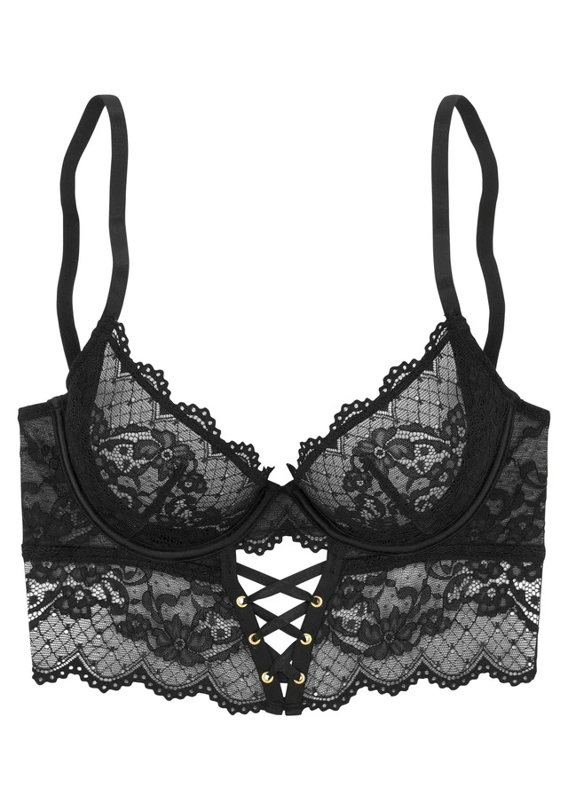 Sexy Longline-BH mit integriertem Formbügel und nahtlos vorgeformten Cups. Unterbrustband aus floraler Spitze und verführerischer Schnürung. Träger und Rückenverschluss sind individuell verstellbar. Mit passenden Unterteilen aus der gleichen Serie erhältlich. Mit Liebe & Leidenschaft in Hamburg kreiert. Obermaterial: 88% Polyamid, 12% Elasthan.