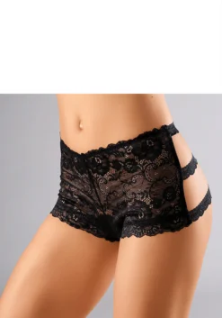 Petite Fleur Gold: Panty Ouvert aus verfĂŒhrerischer Vollspitze. Vorne transparent. Der Po wird nur mit SpitzenbĂ€ndern bedeckt. Erhöhte Passform. Aus 90% Polyamid, 10% Elasthan.