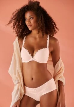 Wunderschöner BH im attraktiven Doppelpack. Mit dekorativem Spitzenband entlang des Dekolletés. Passendes Unterteil aus gleicher Serie erhältlich. Träger und Rückenverschluss verstellbar. Mit Liebe & Leidenschaft in Hamburg kreiert. Obermaterial: 74% Baumwolle, 11% Polyester, 10% Polyamid, 5% Elasthan.