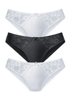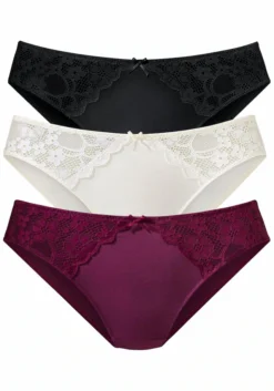 PETITE FLEUR: Slip im 3er-Pack. Spitzeneinsätze seitlich. Mit Baumwollzwickel. Aus 64% Polyester, 25% Polyamid, 11% Elasthan.