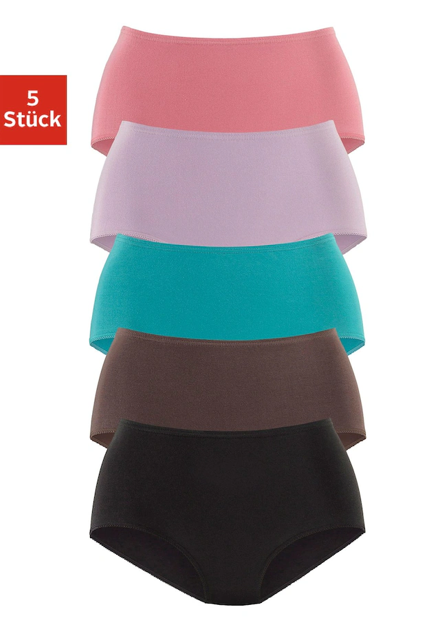 Perfekt für jeden tag: Basic-Taillenslips im 5er-Pack von Petite Fleur. Extrahohe Leibhöhe und gemäßigter Beinausschnitt. Sehr weiches, bequemes Bündchen. Weiche Stretchqualität aus Baumwolle.