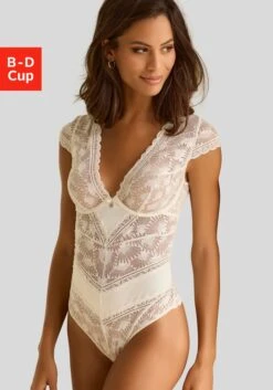 Verführerischer Body mit eingearbeiteten Bügeln. Rundherum aus dezent transparenter Spitze in blumiger Optik. Praktischer Verschluss zum aufhacken im Schritt. Mit eingearbeitetem Baumwollzwickel. Passende BH’s und Unterteile aus der gleichen Serie erhältlich. Reizwäsche. Verführerische Dessous. Spitzen-Dessous. Romantische Dessous. Verspielte Dessous. Obermaterial: 79% Polyamid, 11% Polyester, 10% Elasthan.