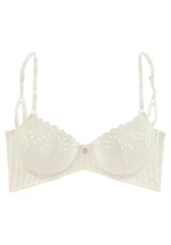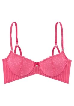 Bügel-BH aus floraler Spitze. Flügel aus Netzmaterial in Streifenoptik. Träger und Rückenverschluss verstellbar. Aus 58% Polyamid, 32% Polyester, 10% Elasthan.