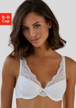 s.Oliver Bügel-BH in High-Apex Schnittform. Aus weichem Microtouchmaterial mit floraler Spitze. Schleifenaccessoire in der vorderen Mitte. Träger und Rückenverschluss verstellbar. Sexy Dessous. Spitzen-Dessous. Romantische Dessous. Verspielte Dessous. Aus 60% Polyamid, 35% Polyester, 5% Elasthan.