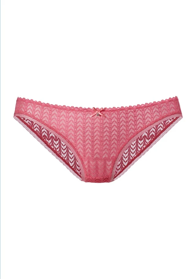 Femininer Slip in einem modischen Design. Mit feiner Zierschleife in der vorderen Mitte. Rundherum aus graphischer, dezent transparenter Spitze. Mit eingearbeitetem Baumwollzwickel. Mit passenden BH’s aus der gleichen Serie erhältlich. Obermaterial: 90% Polyamid, 10% Elasthan.