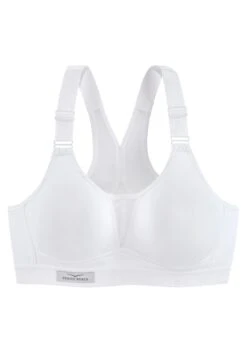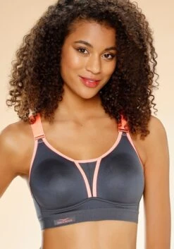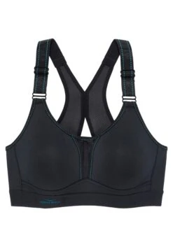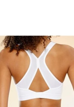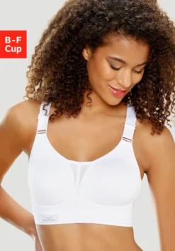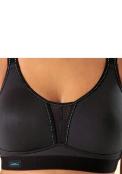 Schöner Sport-BH in schlichter sportiver Optik für ein rundherum gutes Gefühl beim Training. Das feste Material sorgt nicht nur für guten Halt, sondern führt dank COOLMAX Material auch noch zu einem hervorragenden Feuchtigkeitsmanagement und einem trockenen Tragegefühl. Die kontrastfarbenen Ziernähte, der Netzeinsatz in der vorderen Mitte und die tolle Rückenlösung runden den sportlichen Look ab. Die Träger können individuell verstellt werden. Ein verlässlicher BH für die sportlich aktive Frau: optimaler Sitz auch bei starker Belastung wie z.B. beim Joggen oder Ballsport – und das bis in große Größen! Klassische Dessous. Bequeme Alltags-Dessous. Modische Dessous. Aus 90% Polyester (COOLMAX®), 10% Elasthan. BHs sind nicht trocknergeeignet, da die Versteller und Ringe durch die Hitze beschädigt werden und brechen.