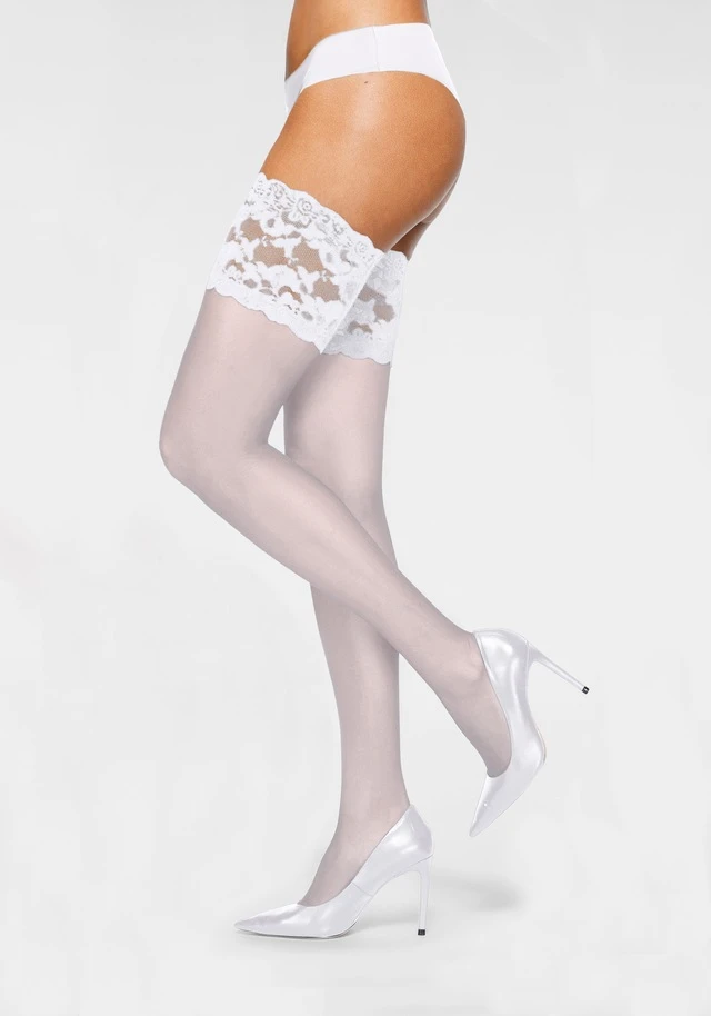 Die seidig glänzenden Stay-ups von Vivance überzeugen mit einer breiten Zierspitze. Für den perfekten Halt sorgen die soften Siliconstreifen in der Spitze. Obermaterial: 85% Polyamid, 15% Elasthan