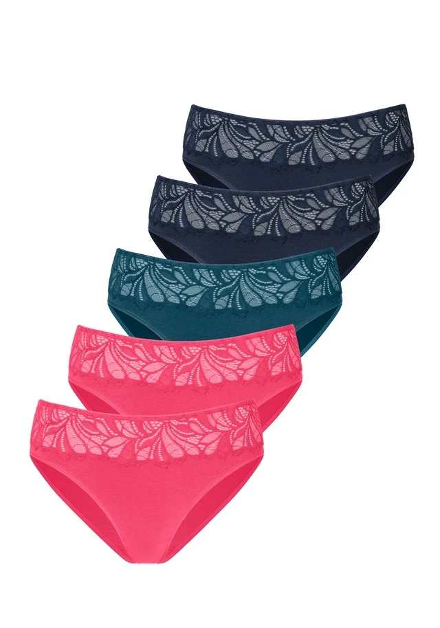 Vivance: Jazzpants im 5er-Pack. Mit weichem Spitzeneinsatz vorn. Flache, elastische Taillen- und Beinabschlüsse.
