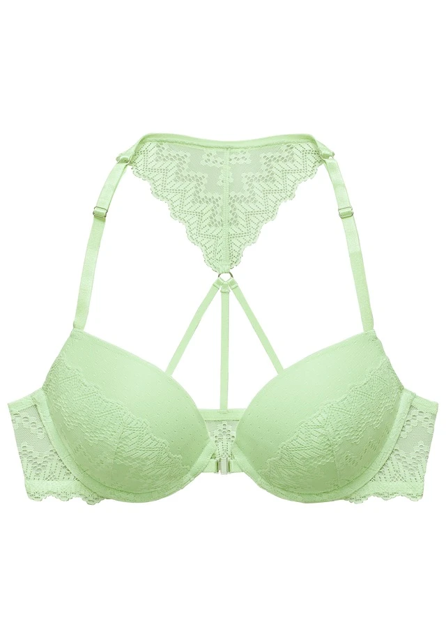 Femininer Push-up-BH mit herausnehmbaren Kissen. Eleganter Rücken aus feiner Spitze in graphischer Optik. Mit praktischem Vorderverschluss. Mit individuell verstellbaren Trägern. Passende Unterteile aus der gleichen Serie erhältlich. Obermaterial: 56% Polyamid, 34% Polyester, 10% Elasthan.